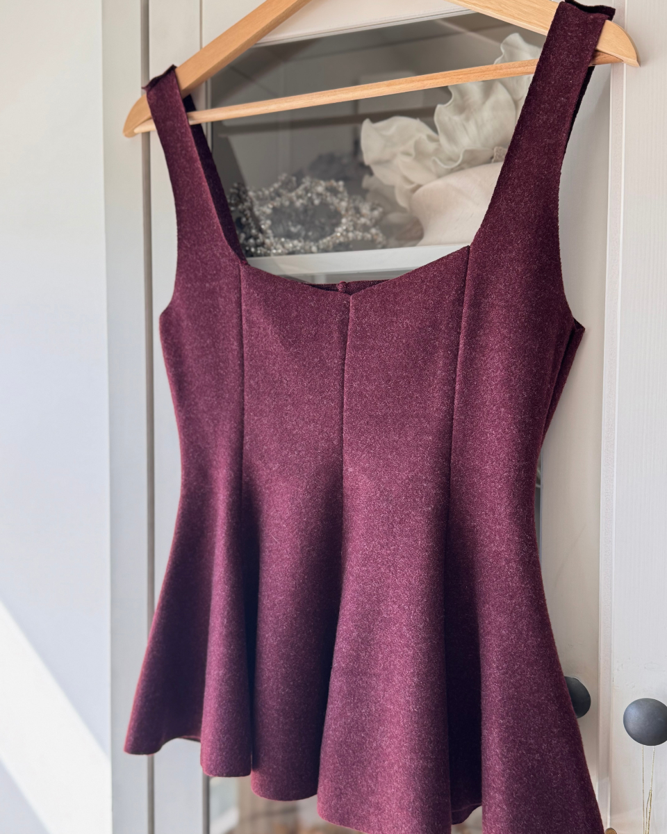 Top de lana con volante en la cintura en color burdeos, estiliza muchísimo la figura, una opción súper versátil.
